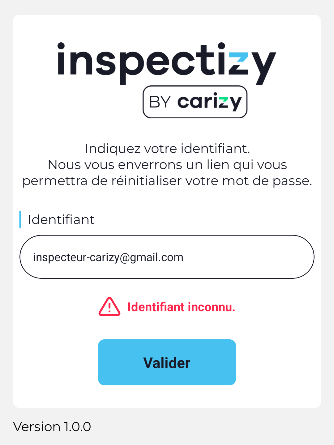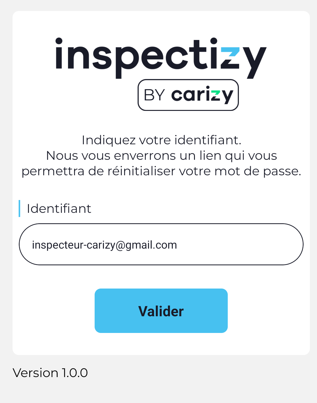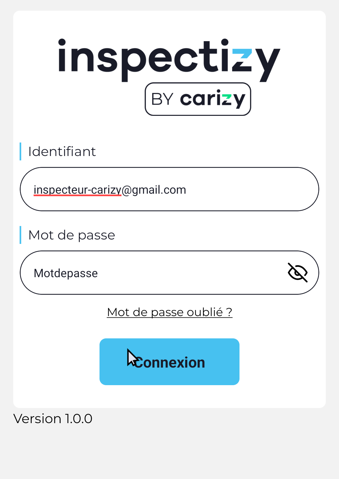 ✔️ Votre identifiant Inspectizy est l’adresse email sur laquelle vous recevez vos factures Carizy.