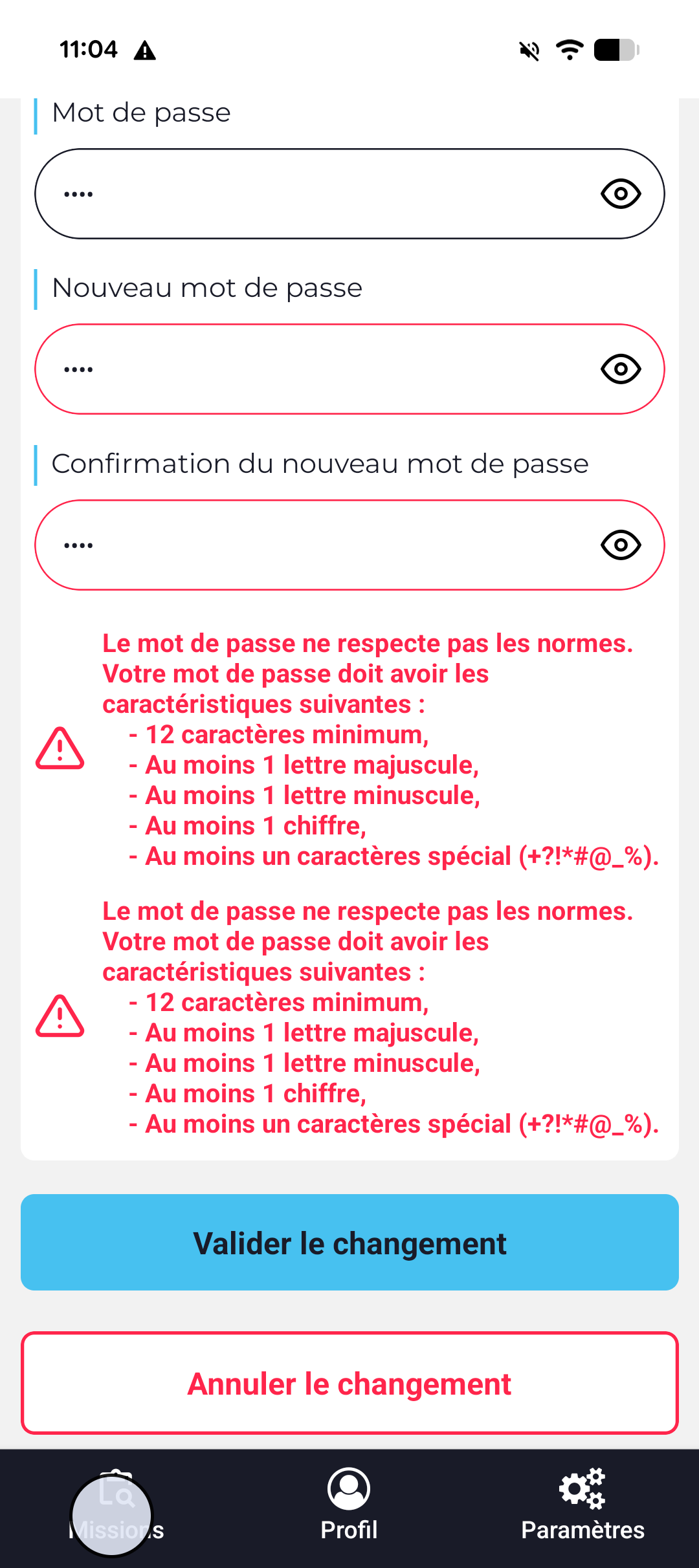 Votre nouveau mot de passe doit obligatoirement respecter les critères suivants :